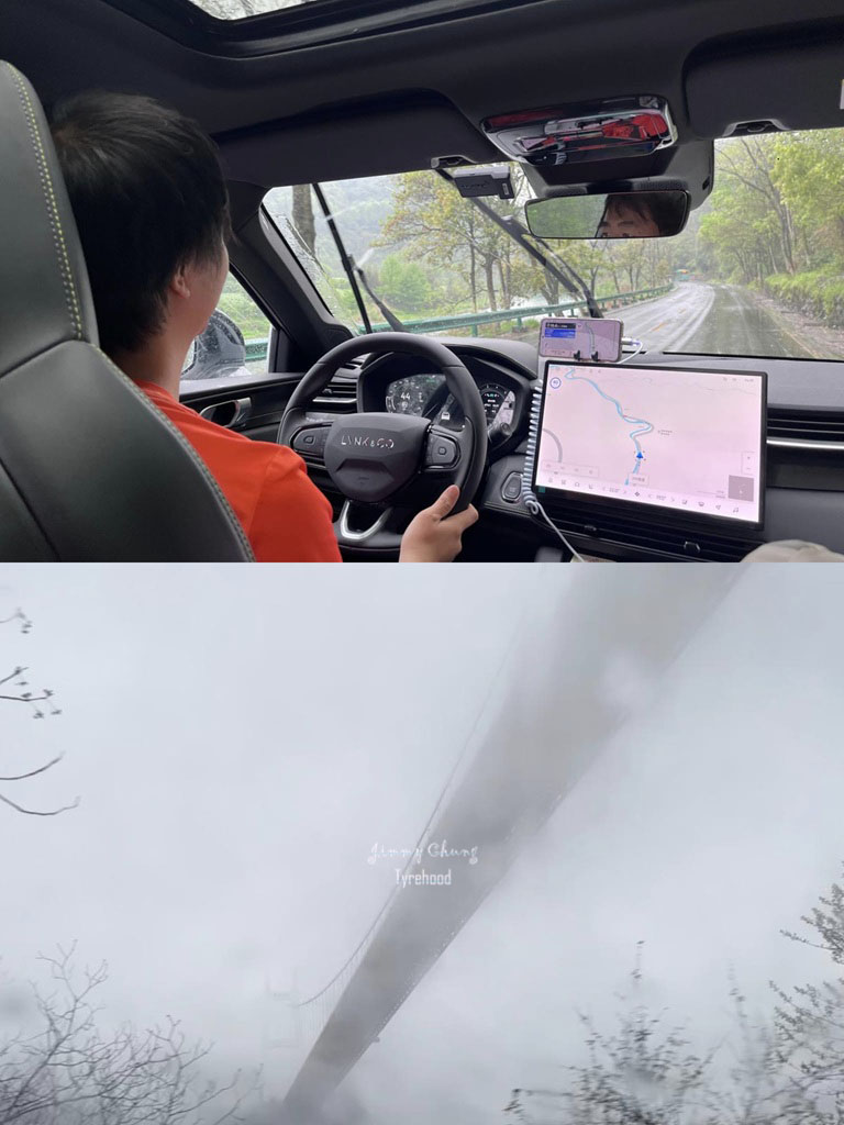 在矮寨鎮附近,你可以參觀瀑布,以及一座外觀類似舊金山金門大橋的長橋。可惜天氣影響了我原本壯麗的全景,另有超過五個連續的髮夾彎,足以讓乘客被甩來甩去。