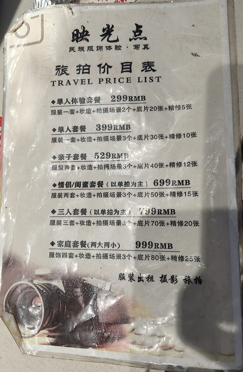 在鳳凰古城,苗族服飾租借是最受歡迎的活動之一。大約有一半的商店提供服飾租借服務,各店價格大致相同。人民幣68元即可包含服飾與簡單化妝,每套服飾需支付人民幣300元押金,並需在晚上10點前歸還。