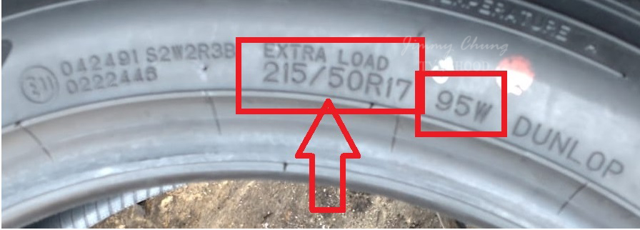 每一款輪胎的兩邊都必定印有該輪胎的尺寸。215/50 R17 95W