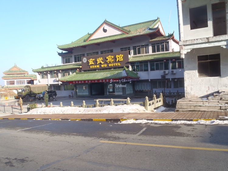 大約晚上七點多抵達。在附近民宿住一晚。三張床的房每晚人民幣一百元。雖然暖氣開著,但仍能感受到外面的寒意。