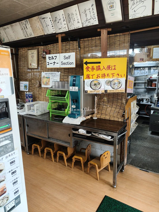 放錢並選擇(多)餐後,在下方取出點餐券,再找座位坐下。之後,店員會過來向你收取餐券。