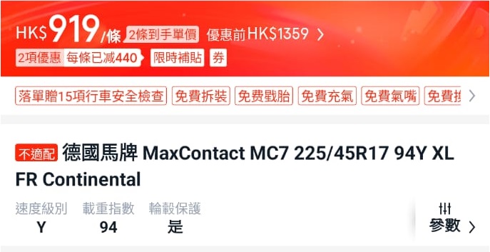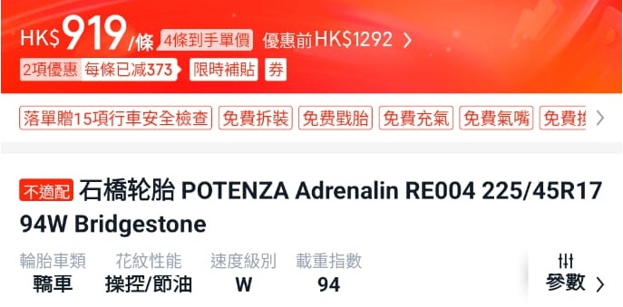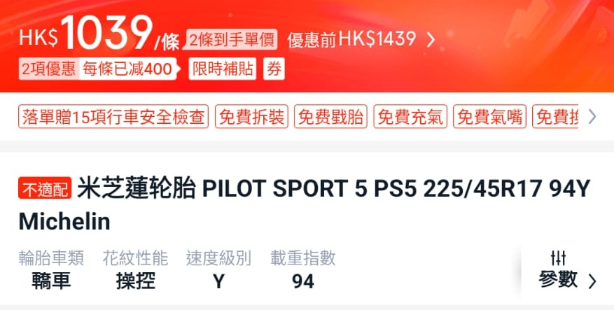 | 225/45 R17 | Price (HKD) / tyre (made in year 2025) Tyrehood selling price reference and compared to other online stores. |